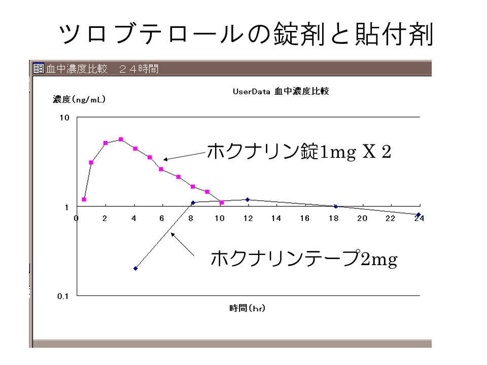 | ホクナリン錠 | ツロブテロール塩酸塩 | 2mg(1mg X 2) | 6ng/mL |