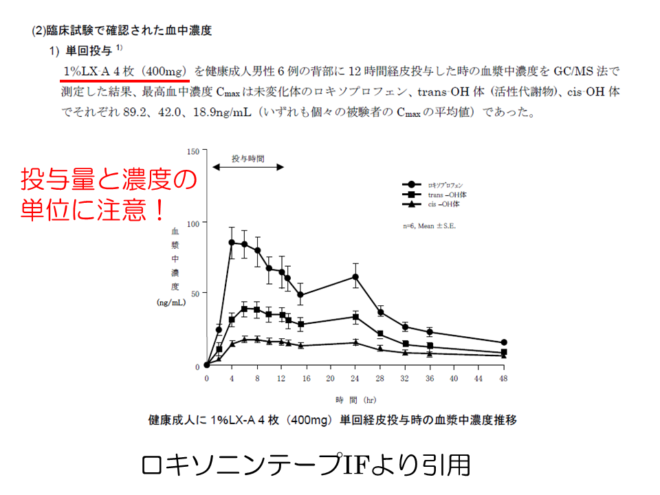 図2.ロキソプロフェン貼付剤(ロキソニンテープ)の血中濃度
