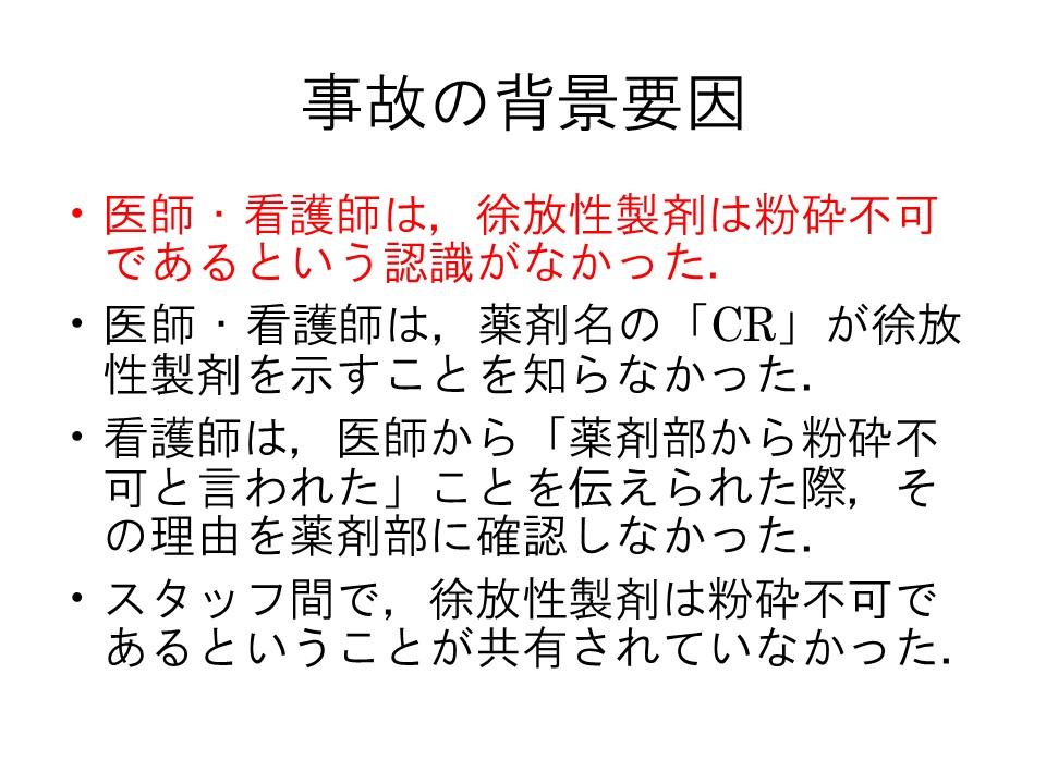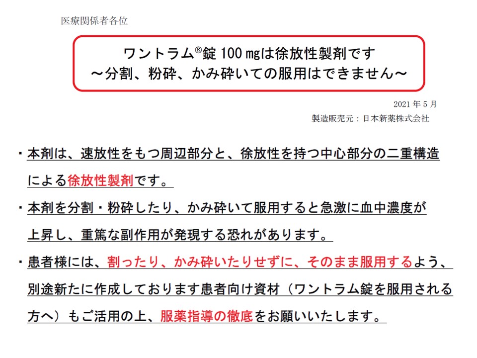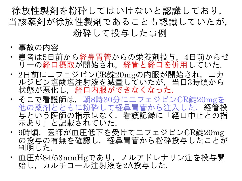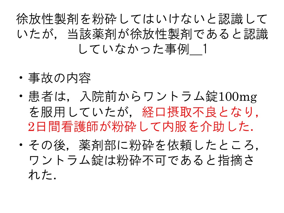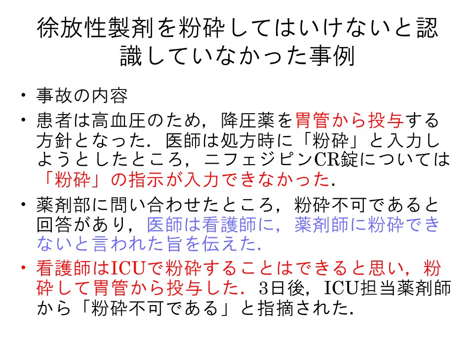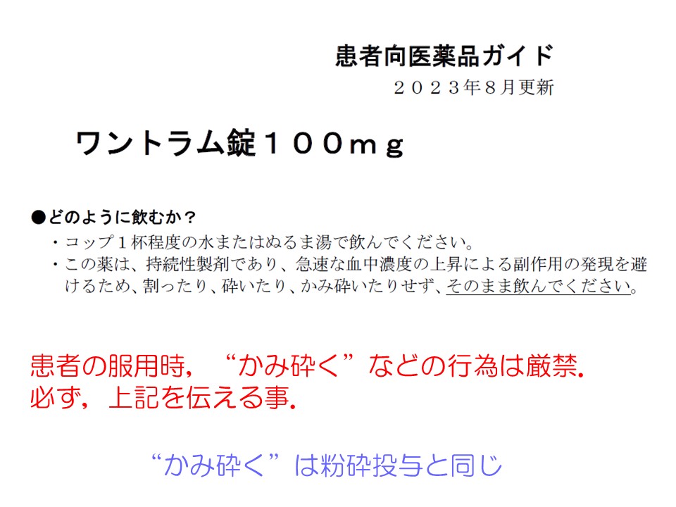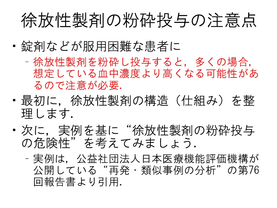 徐放性製剤を粉砕し粉末状にして投与する際の注意点を確認します.