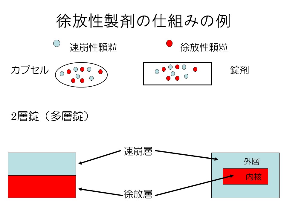 一つの製剤の中に,早く溶解する部分と遅く溶解する部分を混ぜ合わせたものです.