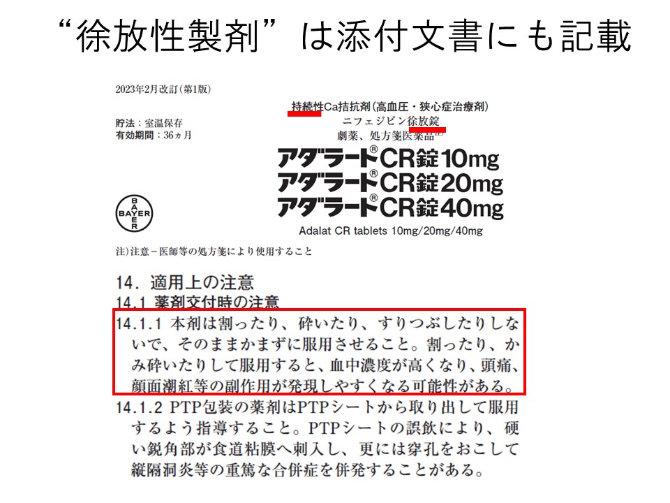 添付文書をよく見ると,”徐放性”の単語があります.添付文書は重要ですね.